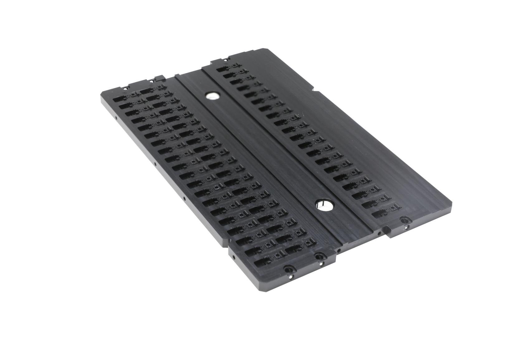 产品名:HGA弹性臂压块 材 料:440C或CD650钨钢 主要工艺:电火花,慢走丝、平磨 技术难点: --零件尺寸小而几何尺寸/形位公差精度极精; --所有精孔尺寸/位置精度0.003mm由慢走丝/镗磨加工; --顶部十余处电火花加工异型浅槽轮廓/深度公差0.003mm --整体金刚石涂层 | 产品名:PZT载板 材料: Al 6061-T6 主要工艺:CNC 技术难点: --所有120控制孔径公差0.005mm以及位置度公差0.005mm. --硬质黑色氧化处理后保证整体平面度0.02mm以内。 | ![]() 产品名:集成安装盒 材料:AL6061 主要工艺:CNC,硬黑氧化+化学转化膜 技术难点: -- CNC多轴加工;六面平面度、平行度、垂直度全部0.005~0.01mm; --三面精孔位置度0.01以内; --近300处尺寸由CNC多次/多面加工/CMM三坐标测量确保。 |