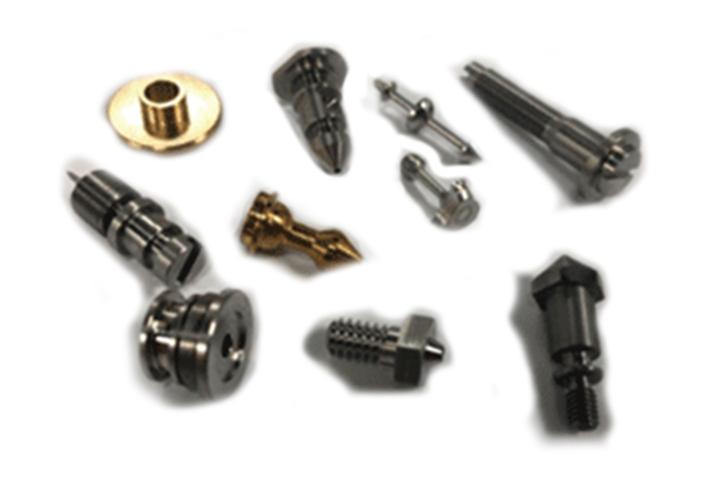 ![]() 产品名:E-驱动架 材料:钛合金 主要工艺:CNC、平磨、慢走丝 技术难点: --多层薄片架变形控制难度大,平面度0.01mm; -- 各层薄片架位置精度±0.015mm; | ![]() 产品名: 销钉/阀芯螺丝类小零件 材 料:不锈钢、铝/铜合金 主要工艺:自动车床 技术难点: --多轴自动车床批量加工,精度0.005mm | 产品名:冲压模-冲头 材料:CD650钨钢 主要工艺:平磨、慢走丝、抛光 技术难点: --尺寸及形位公差精度0.003mm; --冲头成型部位抛光Ra0.05 |